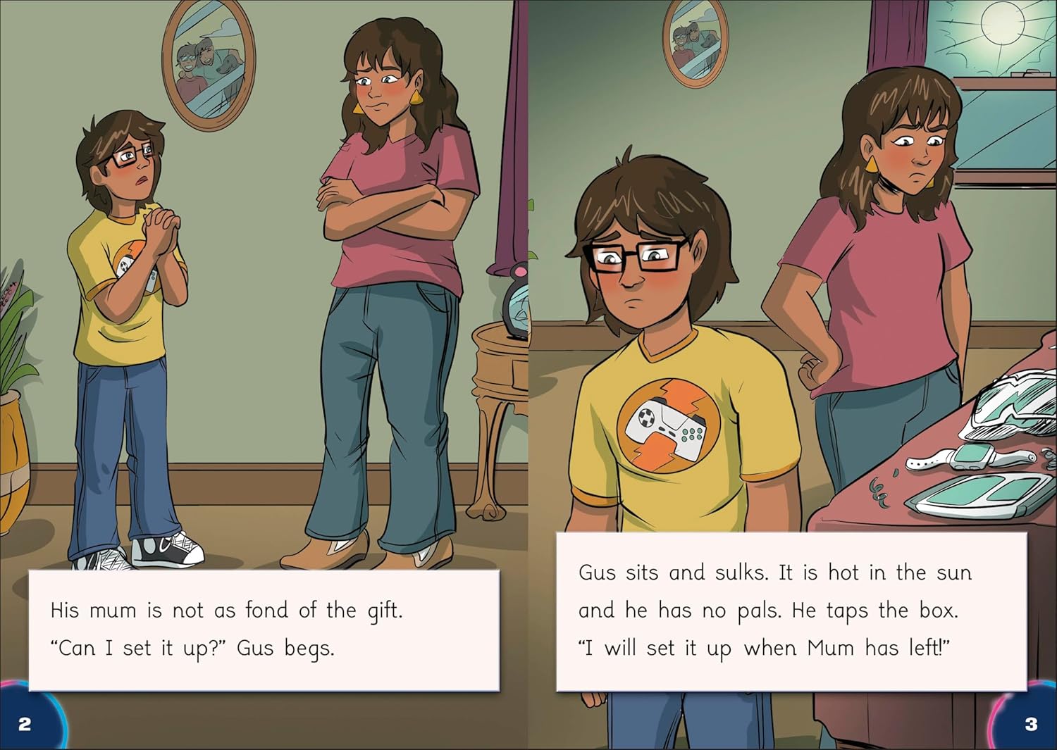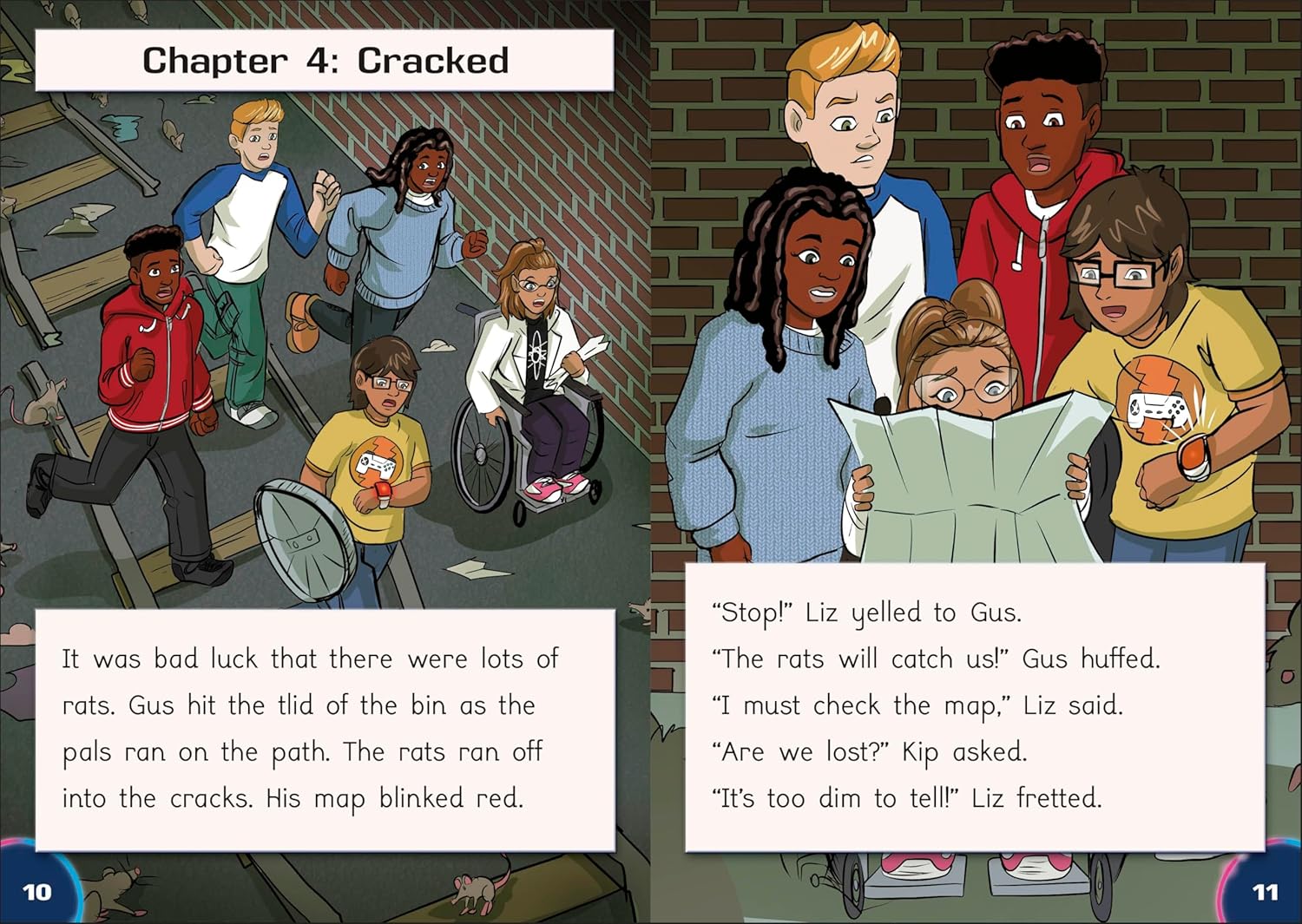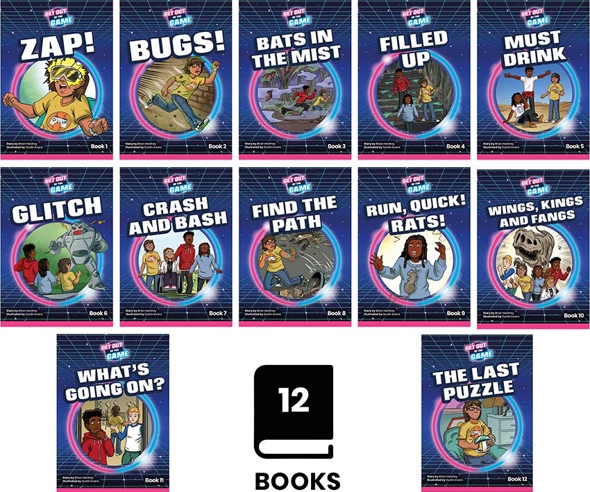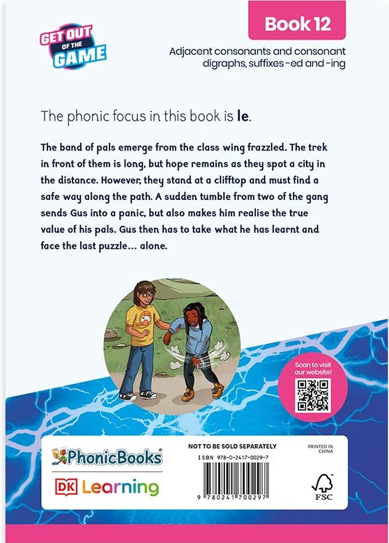 After being pulled into his VR game, Gus learns that there is no way out unless he continues to play. To escape, Gus has to befriend the other players, form a team and work together. This action-packed quest story takes the reader from CVC and CVCC word text through to adjacent consonants, consonant digraphs and suffixes -ed and -ing.