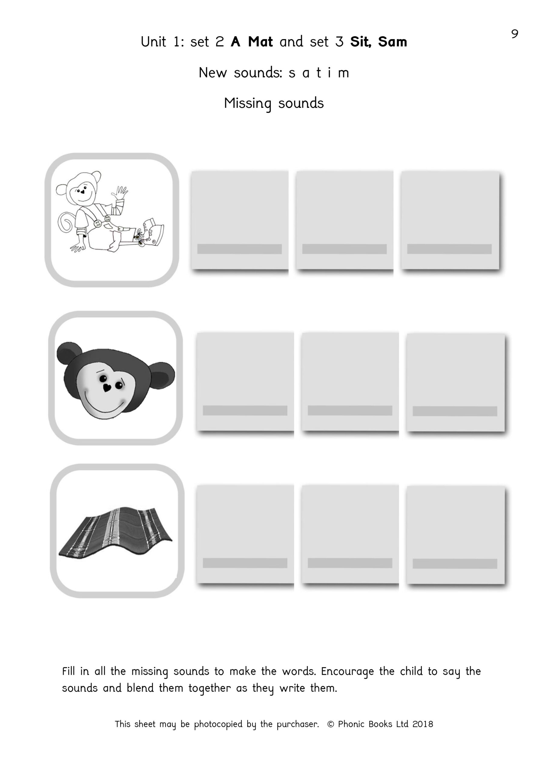 Accompanying photocopiable activities covering word building, writing and blending for Phonic Books Dandelion Readers Set 2 Units 1-10 A Mat (alphabet code blending 4 and 5 sound words) and Phonic Books Dandelion Readers Set 3 Units 1-10 Sit, Sam (alphabet code blending 4 and 5 sound words).