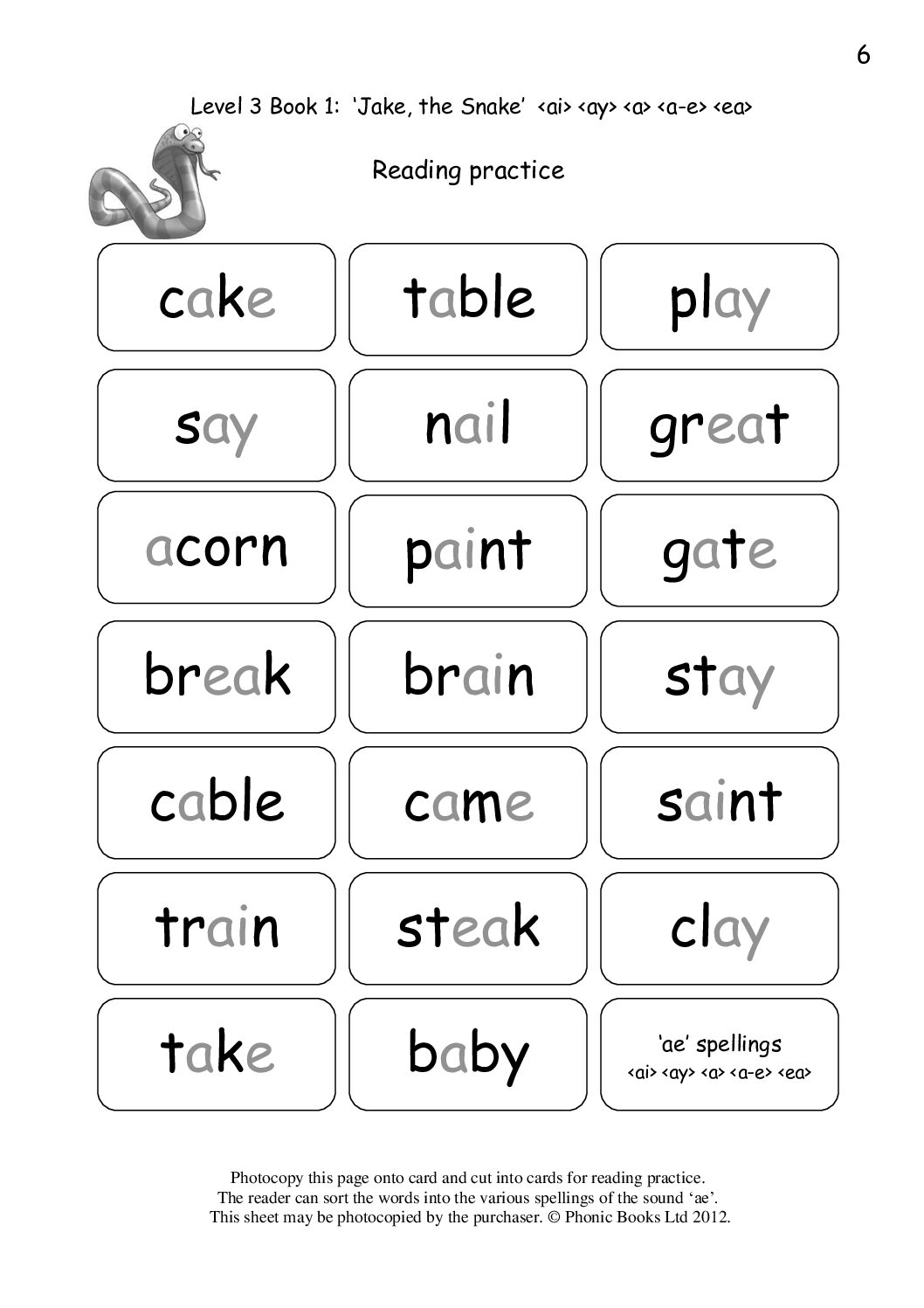 Reading and Spelling Activities Level 3 ‘Jake, the Snake’