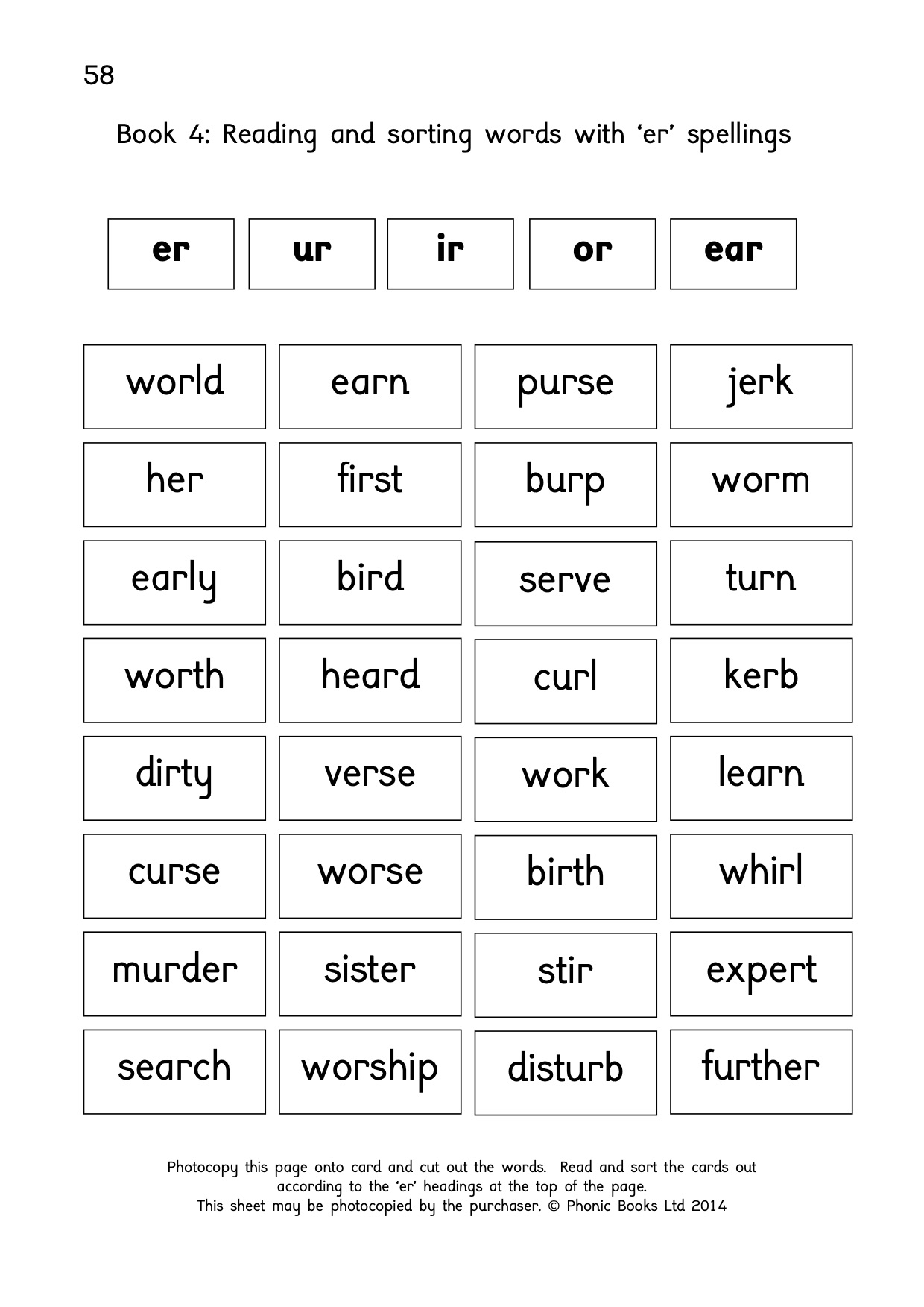 This activity book includes activities for word building, reading, spelling and comprehension linked to the Rescue books (ay, ai, a, a-e, ea, ey, ee, ea, y, e, ie, e-e, ei, ow, oa, o, oe, o-e, er, ir, ur, or, ear, ow, ou & oi, oy, oo, ue, u-e, ew, ou, u, igh, ie, i-e, i, y, aw, awe, a, au, al, ough, air, are, ear, ere, eir, ar).