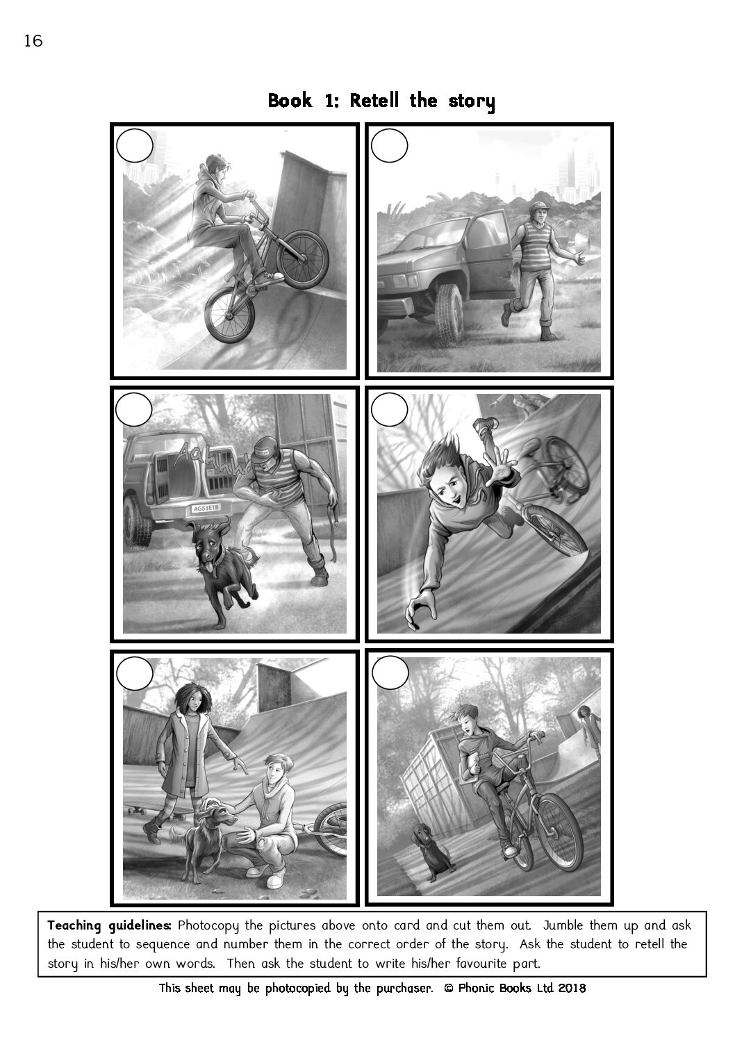 Photocopiable activities to accompany the set of 12 books in Phonic Books That Dog!, decodable phonics books for structured literacy intervention with older readers.